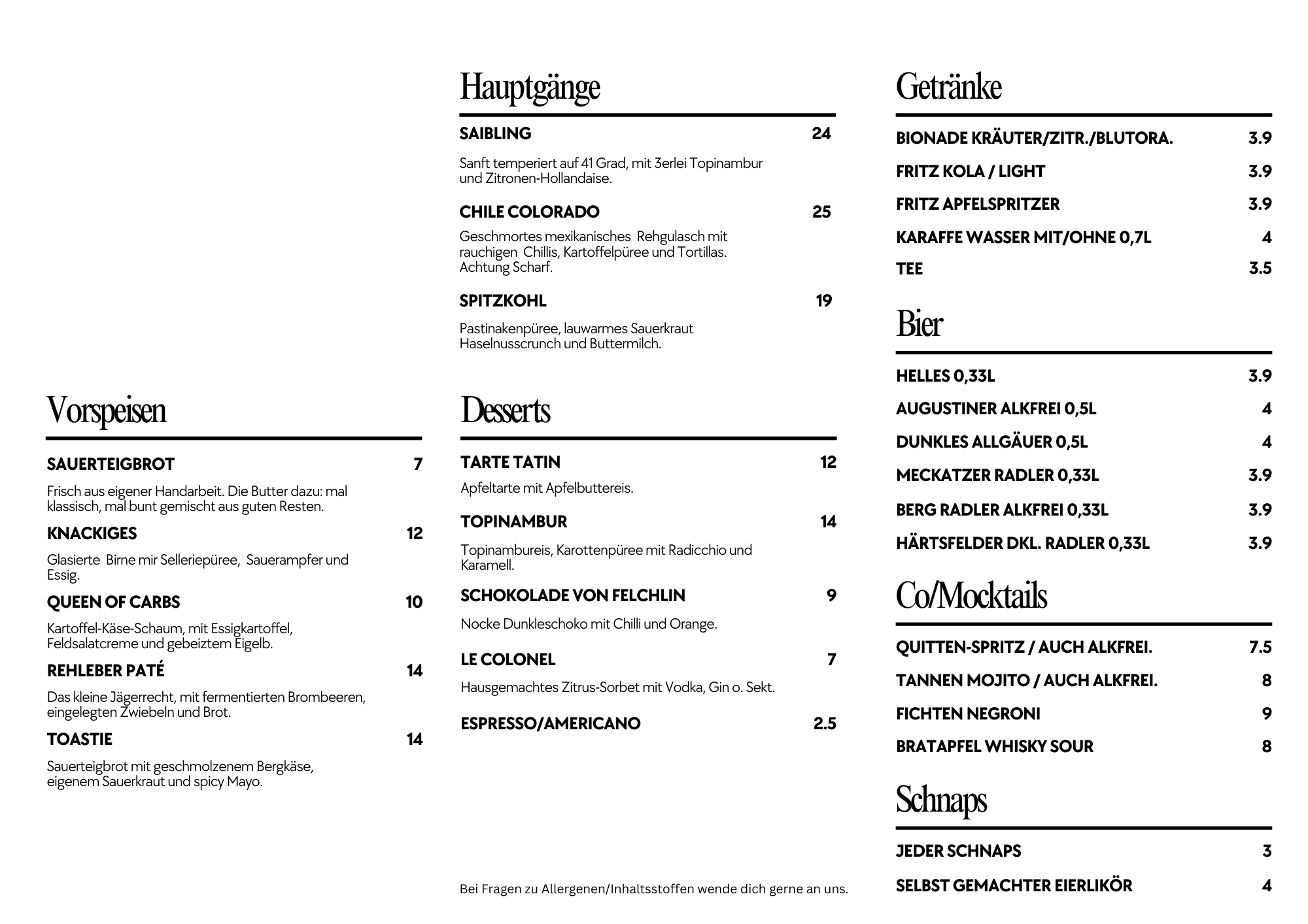 Unser saisonales À-la-carte Menü erzählt eine Geschichte von Zeit und Ort – sie fängt die besten Zutaten ein, die unsere Region gerade zu bieten hat.